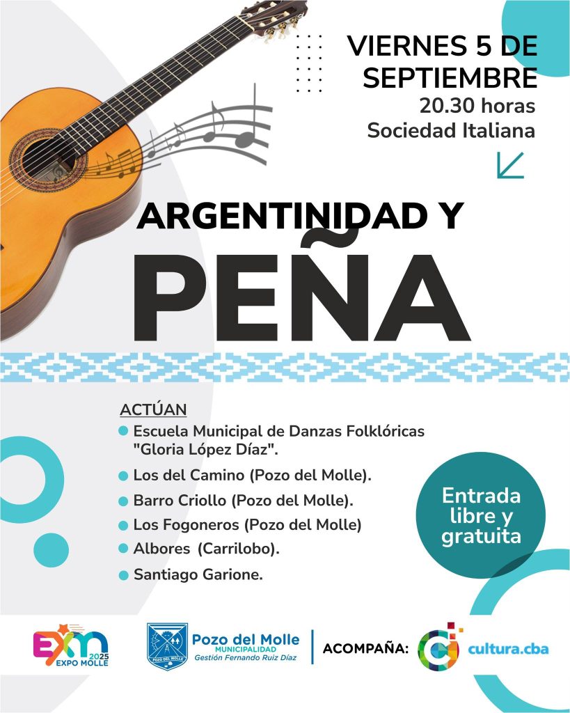 El viernes 5 se realizará Argentinidad y Peña desde las 20:30 en Sociedad Italiana de la localidad.